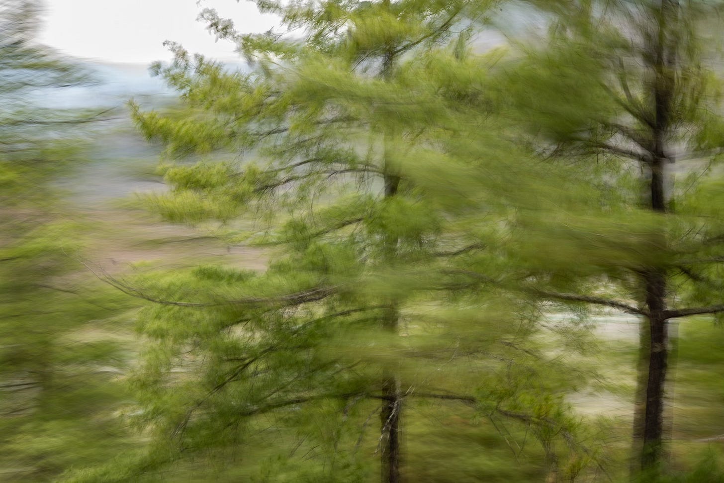 Not long ago, driving over a mountain pass, I played with creating wind-like images through the window, while moving.